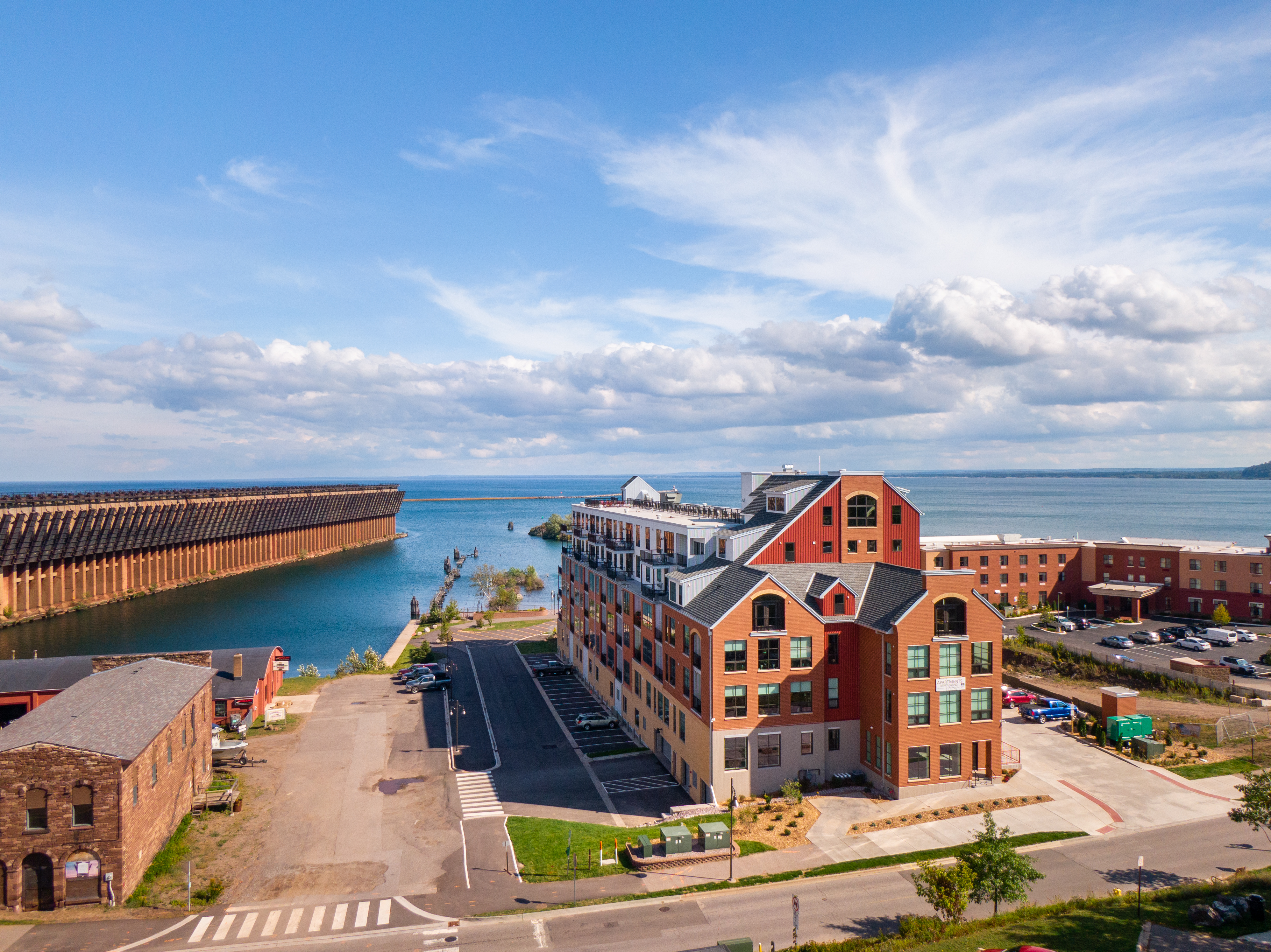 The Marquette Place development is part of a the Founders Landing Redevelopment in downtown Marquette, Michigan. The waterfront redevelopment includes the recently completed 68 high-end unit apartment building One Marquette. The remaining phases of the project will add offices, additional luxury condominiums and street front commercial space. This massive redevelopment sits on the former site of a rail yard and tank farm once used to supply the United States iron ore. Follow the links below to see more information on the individual buildings.